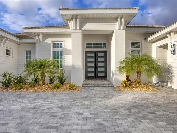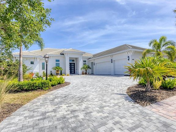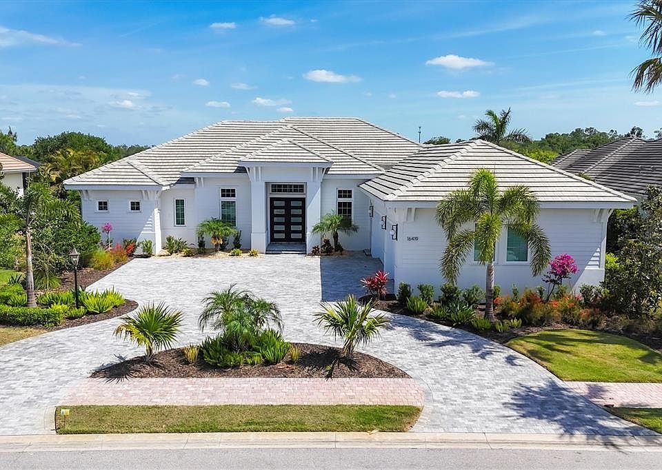 On a quiet preserve in the exclusive gated enclave of Country Club East, this exceptional John Cannon residence showcases refined craftsmanship, modern luxury, and seamless indoor-outdoor living. Designed for comfort and impact, the home features impact-rated windows and doors, a full-house generator, and an open layout that’s as functional as it is beautiful. Enter through 10-foot iron and glass double doors into a dramatic great room with whitewashed European oak flooring, soaring 13-foot ceilings with chevron wood detail, and a striking natural gas fireplace framed by Basalt volcanic tile and reclaimed wood mantle. A custom Whisperkool wine wall holds up to 130 bottles, accented by a chevron Stickwood backdrop. The main foyer features a hidden closet for bags and shoes. The chef’s kitchen boasts Sub-Zero and Wolf appliances, a six-burner range, built-in oven and microwave, quartz countertops, a prep island outfitted with pullout drawers, two for spices, a farmhouse sink and a standalone ice maker. An entertaining-sized island outside the kitchen features Sub-Zero beverage and wine coolers, an additional microwave and ample hidden storage. A spacious walk-in pantry is nearby and includes a built-in tall closet. The great room’s 10-foot sliders fold back into a disappearing corner and lead to the expansive lanai with a PebbleTec infinity-edge heated saltwater pool and spa, panoramic screen enclosure, Shell Lock pavers and a fully outfitted summer kitchen with Alfresco grill, Trailwinds hood, True ice machine, Uline refrigerator and Blanco sink. The private owner’s wing includes two walk-in closets, tray ceiling with crown molding, lanai access, and a spa-style bath with radiant heated floors and a steam shower. Two guest suites are positioned in separate wings, each with its full bath and walk-in closet, one with a private entrance and drop zone, the other with pool bath access. Additional living spaces include a bonus room with 10-foot sliders as a second disappearing corner as well as a study/exercise room with 15-foot ceilings. The laundry room features abundant cabinet storage, designer tile, sink and an additional 60 square feet of dedicated storage carved out behind two double doors. Adding even more value, the home is equipped with a whole-house water filtration system, designer lighting, automatic blinds and an oversized three-car garage. Every detail of this home has been thoughtfully curated for elevated living in one of Lakewood Ranch’s prestigious communities.