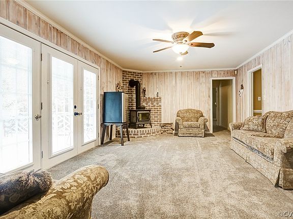 - Description: Carpet over hardwood, cf, wood stove, reces. Light