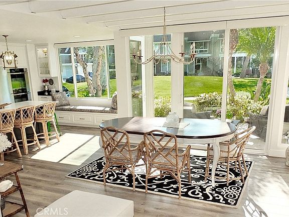 Nested in the beautifully landscaped and gated community of Tennis Estates, you’ll have your own 26ft boat dock and harbor view just steps away. This totally remodeled home has 4 bedrooms and 3 baths, 2 entertainment/lounge areas and a chef’s dream kitchen. Every inch has been upgraded with the most updated finishes. From the front courtyard with the Dutch door, you’re led into an open living and dining room with a lovely view of the garden and green belt. The gourmet kitchen invites you in with a 9 foot island, 160 bottle wine refrigerator along with Dacor gas cook top, ovens, and under counter microwave. The refrigerator with dual ice maker and pantry add to the ease of preparing that perfect meal. A custom window seat and surrounding cabinets create the perfect bar space for entertaining. The first floor has the laundry with additional storage, a bedroom with wall to wall custom cabinets and a 3/4 bath with marble shower. The upstairs has the primary bedroom suite with a fully remodeled vaulted ceiling bathroom. There is an additional lounge area for the primary bedroom, two guest bedrooms and an additional redesigned bathroom. The large primary has a view of the harbor and the primary bath has a marble floor and shower with a soaking tub. The storage in this home is amazing with wall to wall attic space and an outside locked closet for bikes and kayaks.