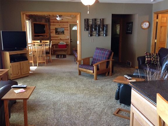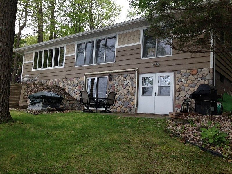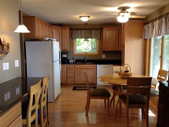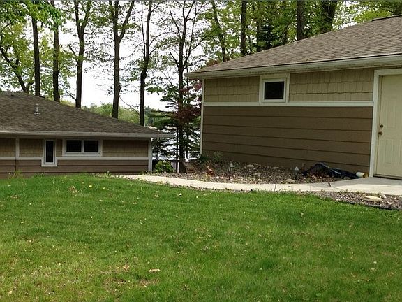LAKE HOME Located on Horseshoe Lake with 125 feet sandy beach 3 Bedroom 4 Season porch Den or office 2 full bath (Master suite and guest) First floor (44x32=1408 sq. ft.) Lower level walkout with family room (28x16=448 sq. ft.) Laundry room Unfinished basement (28x16=448 sq. ft.) Detached 24x26 garage FEATURES EXTERIOR: Updated Craftsmen style construction (stonework, shingle look, white trim, cedar and Masonite siding) New insulation and windows Arch. shingles on house and garage with helmet guard gutters New carpet High-efficiency furnace with AC coil 10 year old sewer system and drain field (pump out every 3 year@$100.00) INTERIOR: Kitchen: maple cabinets, granite counter tops and serving buffet area, smooth top range, microwave, dishwasher, garage disposal, and refrigerator. Master Bath: granite counter top, and tile floor and shower. Guest Bath: stone top and vanity, tile floor, and tub with shower. AVAILABLE: Bennington 22 ft. pontoon with 40 H.P. 4 stroke 56 ft. carpeted aluminum roll in dock. Maytag HE washer and dryer Some furniture Additional property info: http://www.forsalebyowner.com/listing/3-bed-Single-Family-home-for-sale-by-owner-1644-N-Horseshoe-Court-54889/23995568?provider_id=28079