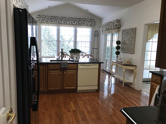 Oak hardwood floors, neutral carpet/paint, Pella windows w/white wood window blinds throughout, 4-Panel Doors Throughout, 9’ Ceilings on First Floor, New Roof ’16, Pre-Wired for ADT Security, Furnace Replaced in ’11, Air Conditioner Replaced in ’12 Grand Room 18’0” x 15’4” Brick-faced Gas Fireplace with Custom Mantle and Glass Enclosure Ceiling Fan Dining Room 12’8” x 8’10” 3-Panel Doorwall to 4-Season Porch Entryway to Kitchen Front Foyer Crown and chair molding, Coat Closet Kitchen 12’4” x 12’11” Granite Countertops w/Stainless Steel Sink, added in ’11 Ceramic Backspashes Oak Merrilat Cabinets (2 w/Glass) Crown Molding GE Stove ’09 Whirlpool Refrigerator ’09 GE Dishwasher GE Microwave ’99 Pantry Kitchen Nook 12’4” x 10”2” Vaulted Ceiling off off of kitchen with doorwall to 4-Season Porch 4-Season Enclosed Porch @12’4” x 10’2”, added in ’10: Insulated roof and 12” x 12” ceramic tile floor, 2 doorwalls, floor-to-ceiling double-hung windows, Ceiling Fan, Electrical Outlets, Timbertech stairway leading to brick paver patio. Master Bedroom Suite 13’1” x 16’4” Crown Molding, Ceiling Fan Master Bath Glass-enclosed, Tiled European Shower, Oversized Marble Garden Tub, His & Her Marble Sinks, 12” x 12” Tiled Floor, Elongated Toilet, Linen Closet, Full Size Mirror Walk-In Closet off Master Bath Plenty of Built-In Shelving and Clothes Racks, Attic Access Den 13’8” x 10’0” French Doors, Crown Molding, Ceiling Fan Front Bedroom Suite Bedroom 11’5” x 10’0” Clothes Closet, Linen Closet Separate Full Bath Tile, Elongated Toilet, Tub/Shower, Merillat Cabinets, Marble Sink, Full Mirror Walkout Finished Basement, added in ’05: Tiled Kitchen (Fridge, Sink, Bar, lots of counterspace and cabinet storage), 1/2 Bath, neutral carpet, storage & workroom area Laundry Room off of Garage Kenmore Washer & Dryer (’97), Merillat Oak Cabinets, Tub, Storage Closet 2-Car Garage Automatic Door, Dry-Walled, Built-In Storage, Hose Faucet, Pull-Down Attic Access