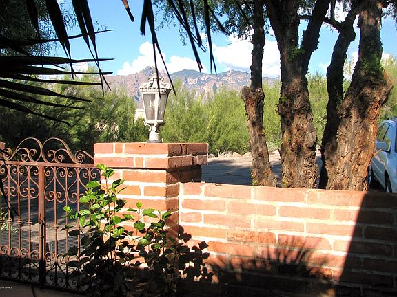 For more information on this property, contact the Listing Agent, Edie Behr at (520) 247-3286 or edieb@LongRealty.com. CHARMING BURNT ADOBE HOME IN DESIRABLE CAT 7 NEIGHBORHOOD WITH SUNSET AND MOUNTAIN VIEWS!!! ENTER THE COURTYARD THROUGH A CUSTOM WROUGHT IRON GATE AND LET YOUR SENSES TAKE OVER WITH THE SOUNDS OF A FOUNTAIN AND THE LUSH LANDSCAPING. CUSTOM WROUGHT IRON ACCENTS THROUGHOUT; FRONT DOOR SCREEN, DOOR HANDLES, BATHROOM FIXTURES AND CURTAIN RODS. A 'SO TUCSON' KITCHEN - MODERN WITH A WONDERFUL HACIENDA FLAIR! NEW CABINETS AND GREAT SIZED ISLAND IN KITCHEN FOR ENTERTAINING. ENJOY THE PLENTIFUL TUCSON SUNSETS AND MOUNTAIN VIEWS IN THE MANY SPACES IN AND AROUND THE BACKYARD. CUSTOM BBQ, REFRIGERATOR, PATIO DECK WITH VIEWS AND FRUIT TREES. SEE LIST OF UPGRADES-ADDITIONS-IMPROVEMENTS UNDER DOCUMENTS.