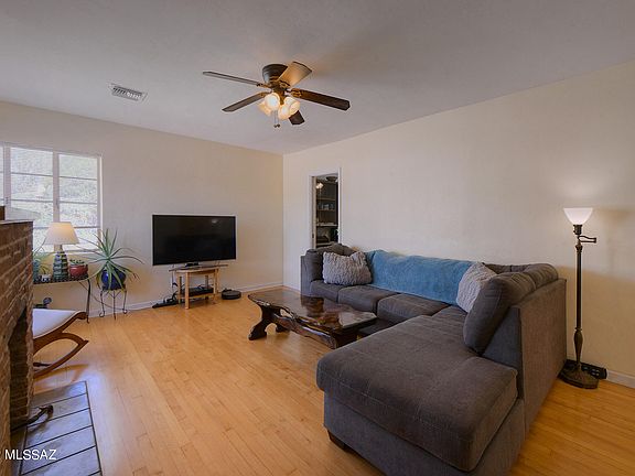 Ready to own a property 4 mins away from the U of A? This 1948 bungalow is the perfect place with UNLIMITED potential. This home has Plenty of Charm and Character and definitely worth a look. It has 2 Bedrooms both with ceiling fans and the primary bedroom has a walk-in closet. There is 1 larger bathroom with a pedestal sink and shower/tub. The living room is a great size and has a gas fireplace, large windows, ceiling fan and wood floors. Functional kitchen with large pantry, ceiling fan, gas range and plenty of counter space. Included in the sq footage is a large Arizona Room with split system heating/cooling. Just off the Arizona room is the laundry with plenty of room for storage.
