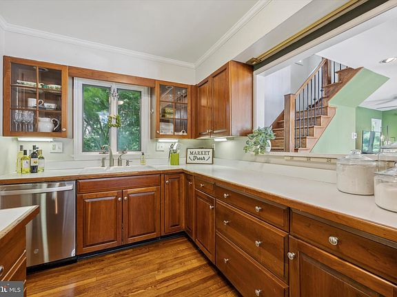 ******* OFFER DEADLINE IS MONDAY, JUNE 17TH at 3pm ******* Welcome to this enchanting 3-bedroom, 2-bath expanded Cape Cod home, brimming with character and modern amenities.! A beautifully manicured brick walkway leads you to a striking leaded glass front door, setting the stage for the charm that awaits inside. Hardwood floors grace the entire home, complemented by some original doors with elegant glass knobs. The first level features a warm family room with wood-beamed ceilings, recessed lighting, and a wall of sliding doors that open to a spacious deck and picturesque backyard. The dining room, adorned with built-in cabinets and drawers, crown molding, and chair rail, connects to the well-appointed galley-style kitchen via a convenient pocket door. The kitchen boasts stainless steel appliances, a breakfast bar, and a window opening that provides a view of the family room. A cozy bedroom on the main level includes an easily accessible washer and dryer. A modern full bath completes this level. Ascend the beautiful hardwood stairs with decorative iron balusters to the upper level, where you'll find two sun-drenched bedrooms, each featuring skylights, beamed ceilings with ceiling fans, and ample closet space. These bedrooms share a hall bath with a granite top vanity, jetted tub, walk-in shower, and skylights. Outside, enjoy entertaining on the maintenance-free deck, complete with a motorized retractable awning. Deck stairs lead to a yard that resembles your own private park-like setting, surrounded by beautiful foliage. The large, unfinished basement provides ample storage and garage access. Rest easy knowing that major updates have been made, including a new roof in 2011, a new oil furnace in 2018, new water heater in 2016, installation of 4 mini/split ductless AC units. Conveniently located near major routes (1, 3, 352 & 202) and public transportation, this home offers the perfect blend of charm and convenience. Don't miss out on this exceptional property!
