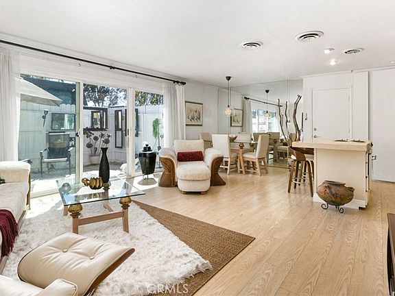 An amazing opportunity to live in Mesa Verde and a 15 min bike ride to the beach! This end unit condo only shares 1 wall and is the epitome of an open floor plan. The home has new flooring and paint. The original pantry was taken out to open the entire downstairs with an island bar and stove/oven. The wall to the garage has been pushed back and extra storage was added for a new pantry! Sound proof windows also keep in the cool air while the sliding glass doors open to the private patio. Upstairs you'll find the oversized master bedroom with 2 closets and the spare room along with the newly fixtured bathroom. The house gets great breezes from the field across the street and comes with a 1 car garage with laundry inside it. One of the lowest HOA's in Orange County comes with a pool and bbq area. Don't miss your chance to live in a highly sought after area with amazing restaurants and convenience to freeways and the Beach!