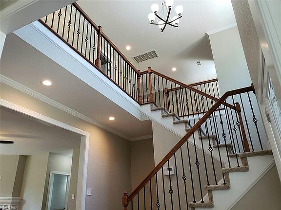 This gorgeous new construction (built in 2019) is located on a large lot in the established and quiet Lake Shores neighborhood. This house is placed on the "back lot" away from direct road traffic and it has a natural wooded setting behind it. This fantastic 5 BR, 3 full bath home boasts a first floor BR & full bath, a large family room and an entry way room that could be used for dining or as an office, as well as a kitchen space for a large dining table. Wonderful upgrades throughout the house include a master bedroom with a custom tray ceiling and lighting, an en-suite custom bath with a separate makeup vanity, custom closet storage and a stand-up shower. There are beautiful custom tiles in all 3 bathrooms. The downstairs has solid bamboo flooring, a beautiful kitchen with soft close custom cabinets and custom subway backsplash. This home is equipped with smart home technology which enables remote access and thermostat control. Conveniently located 2 miles from JEB Little Creek Base, 12 miles from Naval Base Norfolk and minutes from I-64, shopping and beaches. Renters are responsible for all utilities including water, electric, WIFI. There is no gas hookup in this home. Renters are responsible for yard maintenance. We have a lawn mowing service we recommend if needed. There will be semi-annual check-ins to make sure our beautiful home is being taken care of. For leases 2+ years, rental price will have a 5% discount. Please describe your pets in your application including type/age/training levels. Pets will be approved on a case by case basis. No smoking. House will be completely unfinished, however we are moving cross-country and are willing to sell our couch, dining table and some bedroom furniture if renters are interested.