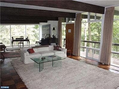Light filled Mid Century Modern Home on wooded lot featuring open floor plan and full windowed walls in almost every room. This private retreat is situated on the end of a road known for its multi million dollar properties. Main Level includes oversized Living Room with cathedral beamed ceiling, fireplace and access to deck overlooking rear yard and valley below. Kitchen with breakfast bar and pass through to Dining Room with full view of pool and large deck area. Beautiful hardwood floors and contemporary track lighting. Master Bedroom with full Bath. Two additional Bedrooms and Hall Bath. Open staircase to walkout Lower Level featuring large Family Room with exposed stone wall, 4th Bedroom also with exposed stone wall and Full Bath. Laundry, Mechanical and Storage rooms. Wood and stone exterior with Carport and 3 rooms with electric service adjacent to pool which can serve multiple purposes from cabanas to extra storage. Bring your kitchen & bath ideas and make this unique home even more sensational!