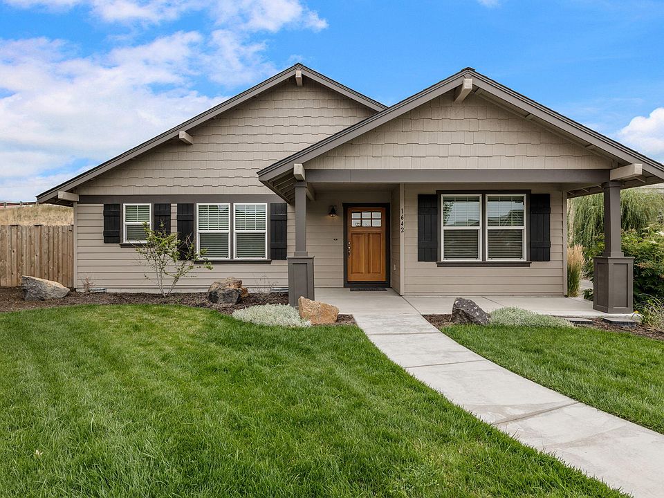 Like new single level home located in close proximity to shopping, medical and parks. This well thought out floor plan offers a split style 3 bedroom, 2 bathroom, 1791 sq ft, lightly lived in since constructed in 2019. Large open entry, with main living areas offering laminate wood flooring. Vaulted ceilings in the great room and primary suite. Great room filled with lots of natural lighting, kitchen has supersized center island with an amazing amount of storage space, walk in pantry, and S/S appliances. Living room with natural gas fireplace & built in console center. Covered front and back porch, fully fenced, front and back yard landscaping. Fully finished double car attached garage. Sitting on a generous .38 of an acre lot with RV parking.