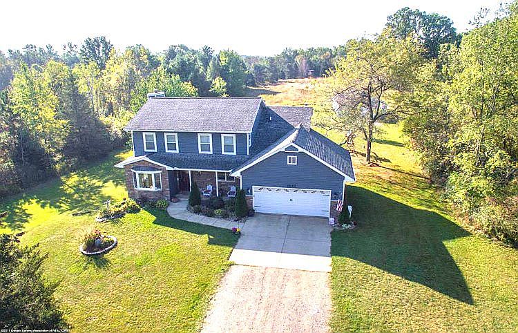 Amazing private setting two story home with gorgeous property. 10.01 acres. Front covered porch and craftsman style wood door greet you as you walk into this well maintained home. Freshly painted with neutral colors. New wainscoting surround dining room and foyer areas. New foyer light fixture and stairway lighting provide a light and airy interior feel. Gorgeous and spacious family room with vaulted ceilings offers views to private property and sliders to no maintenance deck. Large 32 x 48 pole barn with water, electric, concrete floor, automatic garage door and 2 clean horse stalls with new storage cabinets. Property includes walking trails and amazing Norway Spruce and White Pine Trees surrounding the land. Newly installed fire pit. Kitchen has bright white cabinets with granite tops, large sink, filtered drinking water and new SS appliances. Mud room off of attached oversized 2 car garage.