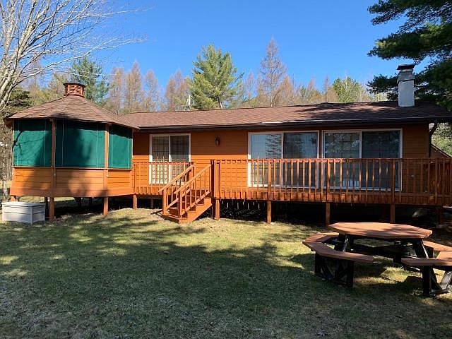 A really well loved home. This 3BR/2BA home sits on 100' of level sand frontage on Tambling Lake. Tambling Lake offers 169 acres of very clear water and is located only minutes from Eagle River. The home offers 3 bedrooms, 2 baths and a terrific layout. The spacious eat-in kitchen features oak cabinets & a large island. The living room faces the lake and offers great lake views. The master BR is also spacious and has a private bath & huge walk-in closet. There are two additional bedrooms & a full bath. There is also a first-floor laundry along with the utilities. The well & septic are newer. The home is year round and has a newer boiler that also provides the domestic hot water. There are wall mount slim line air conditioners that can also offer heat. Outside there is a large lakeside deck & a screened-in gazebo. Plenty of room for toys in the 40' x 24' detached 4 car-garage with storage above too. The roof is in great shape and the siding is low-maintenance HardyBoard.