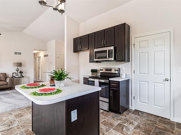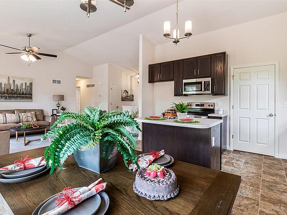 Prepare to be dazzled by this stunning ranch home nestled on a coveted flat lot with picturesque views of common ground! This 3-bedroom, 2-full bath gem boasts nearly 1300 square feet of pure luxury! Step inside and be greeted by vaulted ceilings in the Kitchen, Breakfast, Great room, and Entry foyer, creating an atmosphere of spaciousness. The heart of this home is the gourmet kitchen, featuring 42" tall custom cabinetry, a generously sized center island with an inviting overhang, and sleek stainless steel appliances that will elevate your culinary adventures to new heights. Home has main-level laundry, (making everyday tasks a breeze) 30-year architectural shingles and a Builder 2-10 warranty, you can rest easy knowing that your investment is protected for years to come. Fully sodded lawn, soon to be installed (weather permitting), transforming your outdoor space into a paradise where you can relax, entertain, and create cherished memories with loved ones.