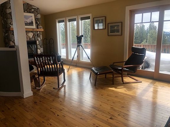 Enjoy 180 degree views of the beautiful mountain terrain. Great room, deck and 2 master bedrooms have panoramic views. Upstairs master has adjoining office which could be an additional sleeping area. Downstairs master is a studio with area for additional sleeping (such as bunk beds). Warm up by the river rock fireplace when you get home from a day of fishing on Lake Davis. Home has hickory flooring and an open kitchen with granite counters. Plenty of light with south facing views and skylights. Would make a great second home, rent it out while you're not using it. (Lot size includes extra lot APN 128-081-006)