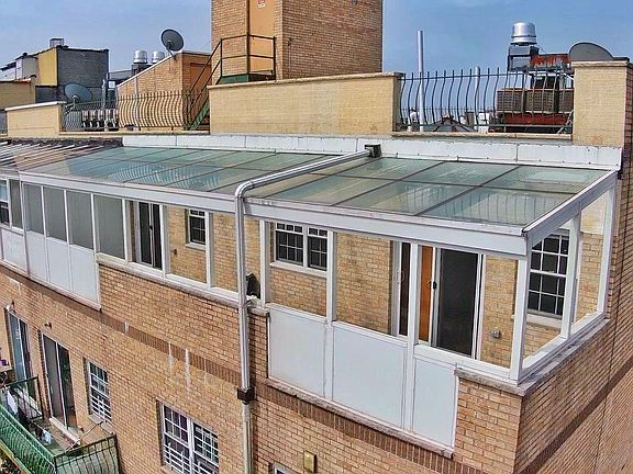 Beautiful, sun-drenched 1 bedroom / 1 bath penthouse condo located on the 6th floor of the elevator building in the heart of Bensonhurst. Huge, 300 sq.ft terrace with a spectacular view of Manhattan and lots of upgrades: brand new glass canopy, brand new sliding glass doors to terrace (with cost-efficient argon gas-filled), new porcelain tiles on the terrace, double insulated, cost-efficient roof across the entire apartment unit. 100% move-in ready apartment with brand new floating floors, fully tiled bathroom, washer & dryer within the unit, central air and heat, and much more Tenants responsible for heat, cooking gas & electric.