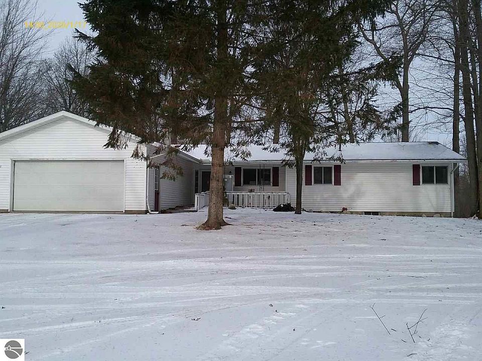 Ranch-style house with a walk-out basement, pole building & ponds on 9 acres.