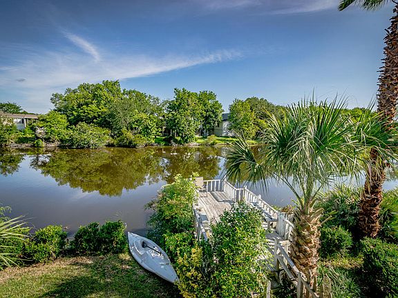 Riverfront...a rare neighborhood that has the feel and look of Folly Beach. A small piece of land surrounded by marsh, with two natural lakes also included within its boundaries. This home overlooks one of the lakes that has ducks, fish, and the most beautiful, peaceful daily sunsets. The home has a deck down on the water to set off in your kayak and a wrap around porch to enjoy your morning coffee. The interior cathedral ceiling and open floor plan create comfort and are ideal for entertaining. Trendy brand new wood laminate flooring work great with sandy feet from nearby Folly beach. Three nice size bedrooms, all with new carpet, two full baths and a separate laundry area complete the living space. This home is for those that love the smell of salt in the air and the feel of being far from it all. The irony is Folly Beach is only two miles away and downtown Charleston is less than ten. Come and see with a little updating why this could be your affordable coastal home!