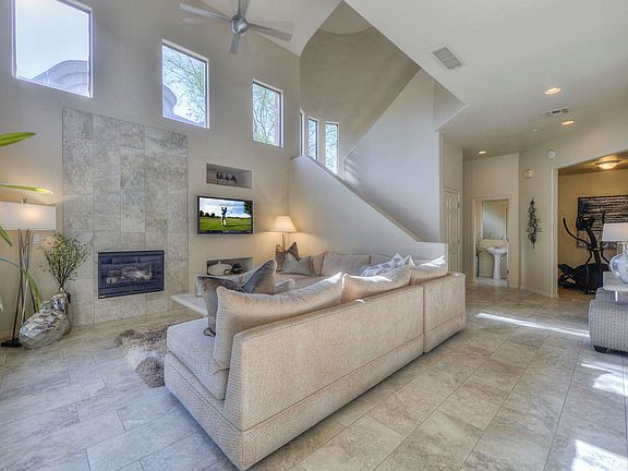 Scottsdale soft contemporary condo in prime location within the desirable gated community of Cachet at McDowell Mountain Ranch. This smart upgraded 2-story/2-car garage offers spacious master suite with private balcony, second bedroom w/en suite bath, den/office, guest 1/2 bath and open concept floor plan where great room, dining and kitchen spaces seamlessly interface. Wrapped in neutral tones, natural rays of light, and white wooden shutters, home upgrades include granite counters, new stainless appliances, custom tile flooring and remodeled bathrooms featuring fully tiled showers. Adjacent natural desert scape, your ground floor and balcony patios offer quiet surroundings and beautiful mountain views. Community offers walking paths, gym, BBQ area, heated pool and spa. Welcome home!