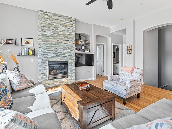 Unique end unit with Camelback & City lights views! Split floor plan, windows across the back to capture light and those McDowell mountain views. 2 bedrooms, 2 baths - split floor plan. 1 car garage. Gated neighborhood. New flooring throughout (2022), new granite kitchen & bathroom countertops, frameless shower door in primary bathroom. All new appliances (2017). Kitchen breakfast bar updated and lowered! Great room floor plan with fireplace w/ accent wall to the ceiling and plenty of room for your sectional and dining room table. High ceilings. Perfect for a full-time resident or someone looking for a lock and leave property. 1 car garage, no other parking for an owners second car in the development (only guest parking). Only mins to Westworld entertainment/events, fine dining, golf, hiking trails, and much more.Award-winning McDowell Mountain Ranch has a large range of luxury amenities within the community and nearby including two recently renovated community parks, community center featuring pickleball, heated pool and spa, splash pad, basketball court, large grass area, and tennis courts. McDowell Sonoran Preserve and trail system, McDowell Mountain Golf Club, City of Scottsdale Aquatic.