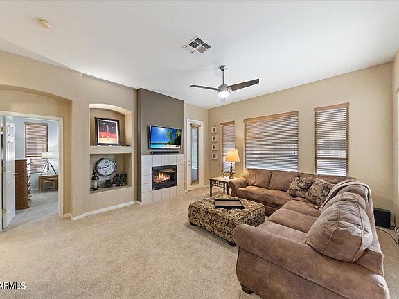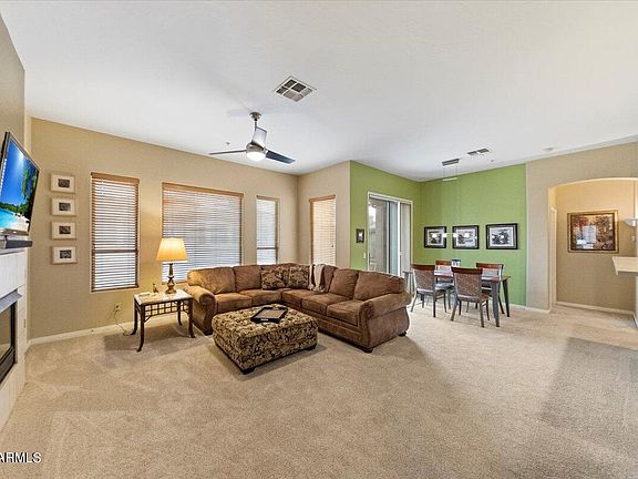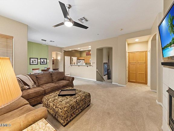 This immaculate 2-bed, 2-bath townhome spans 1,338 square feet & is situated in the highly sought-after McDowell Mountain Ranch Master Planned Community. The lush carpet & tile flooring complement the open & airy floor plan, filled with an abundance of natural light. The fabulous corner end unit boasts 2 south-facing balconies, providing stunning sunrise views. Enter into the living room which features a cozy gas fireplace, 3 ceiling fans & seamlessly connects to the eat-in-kitchen w/ maple cabinetry, ample counter space, a peninsula w/ breakfast bar seating for 3+, & casual dining w/ a balcony. The split floor plan includes a master bedroom w/ balcony access, walk-in closet & a full bathroom w/ dual sinks, shower & private toilet room. The guest bedroom, located...(CONTINUE READING)... off the living room, offers built-in desk space, a balcony & a full bathroom. Additional highlights include a 1-car attached garage w/ plenty of storage space, new water heater, Ring security system, under cabinet LED lighting, Web enabled thermostat, Bosch dishwasher and more!.. Enjoy community amenities such as a beautiful resort-style pool, spa, fitness center, tennis courts, parks & trails....all conveniently located close to shopping destinations.