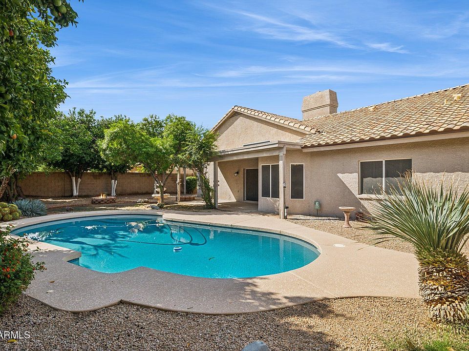 Enjoy a bright bay window breakfast nook, hardwood flooring in the main living areas, and new carpet in the primary suite which also features private access to the backyard. The backyard oasis offers complete privacy and a sparkling pool, perfect for relaxing or entertaining.