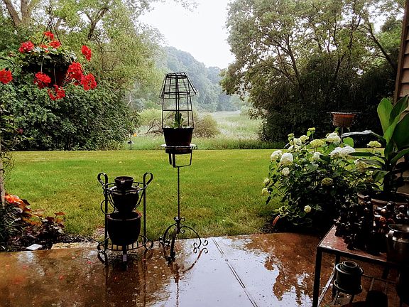 Spectacular townhome offering with captivating views of Purgatory Creek. Soaring vaulted ceilings invite you inside the foyer and great room. This space features a dominating wall trimmed with Scandinavian motif and is surrounded by custom wainscotting. The kitchen renovation is stunning and offers Carrera marble countertops, stainless steel appliances, open shelving & abundant storage. The adjacent dining room and four-season porch provide heavenly views of the tranquil backyard setting. Head to the upper level to find a vaulted primary suite with a private deck. The spa-like primary bath offers a dual vanity, walk-in shower, separate soaking tub & beautiful tile surround. Another bedroom and full bathroom are right down the hall. The lower level showcases a stacked stone fireplace with a gas insert & built-in wet bar. The large sliding door walks out to a patio and perennial garden. Another spacious bedroom and full bathroom make for a perfect retreat for guests. COME FALL IN LOVE!