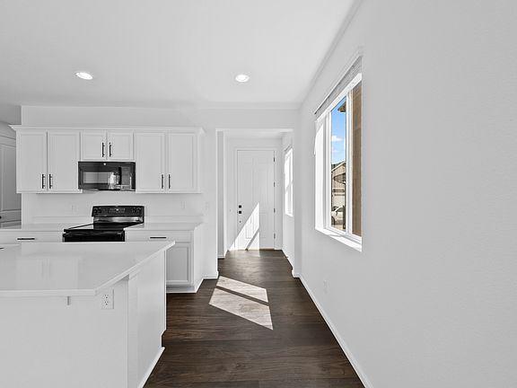 minutes to Denver Tech Center. House has so many custom features, from white cabinets with slow closing doors in kitchen and all bathrooms. Quartz on kitchen counters as well as bathrooms, LVP flooring on entire first level, with custom tile. Black door knobs and light fixtures thoughout home. This house has 3 bedrooms with 3 bathrooms and a large loft for additional entertaining. House has all appliances, fridge, microwave, dishwasher, stove and washer and dryer. Custom window coverings as well. A must see! great schools, shopping , entertainment nearby with bike paths and mountain views.
