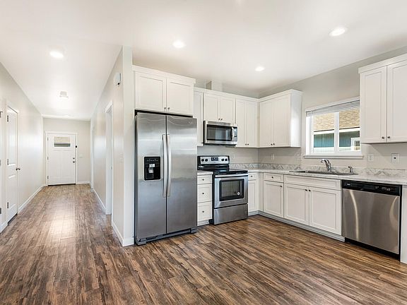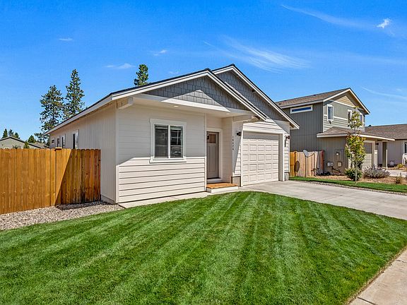 This move-in-ready single level home was built in 2019 and boasts 3 bedrooms, 2 baths, and an inviting open concept main living area. Inside, you'll be greeted by the warm ambiance of luxury vinyl flooring that flows seamlessly throughout, complemented by vaulted ceilings that create an airy and spacious atmosphere. The kitchen is the heart of this home, complete with stainless steel appliances including a built-in dishwasher, microwave, range, and refrigerator. Step through the sliding door to discover a fenced backyard with a patio, tool shed, and new grass with a sprinkler system. The primary suite is a true retreat, offering a spacious vaulted bedroom, a walk-in closet, and a private bath. Aesthetically pleasing and move-in ready, the interior has been freshly painted, exuding a clean and welcoming ambiance.
