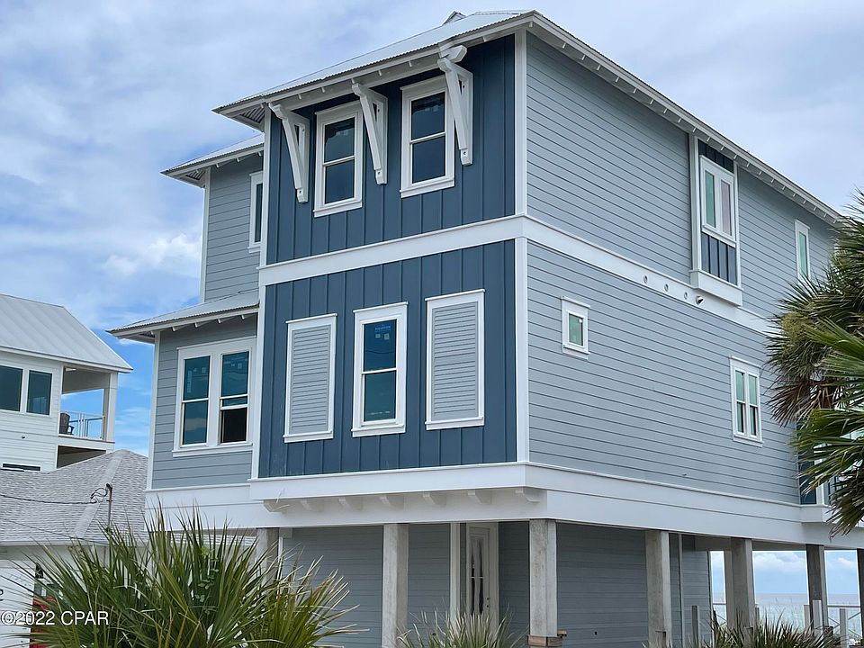 , Brand New Almost finished, Gulf Front Beach House, projected finished date 8/1/24 FULLY FURNISHED, PROFESSIONALL DECORATED. This Beach House is within walking distance to Pier Park and just across the street from Very Popular Dusty Raw Bar, (look for Blue House) The house will be fully Furnished, sleeps 20 and ready to go. This three-story home is built on a 50' x 124' with your own private walk over, pool and plenty of deck room on each floor. The house features two master suites that are gulf side.