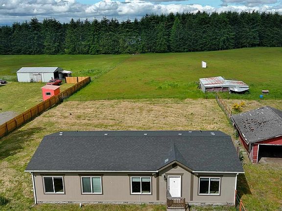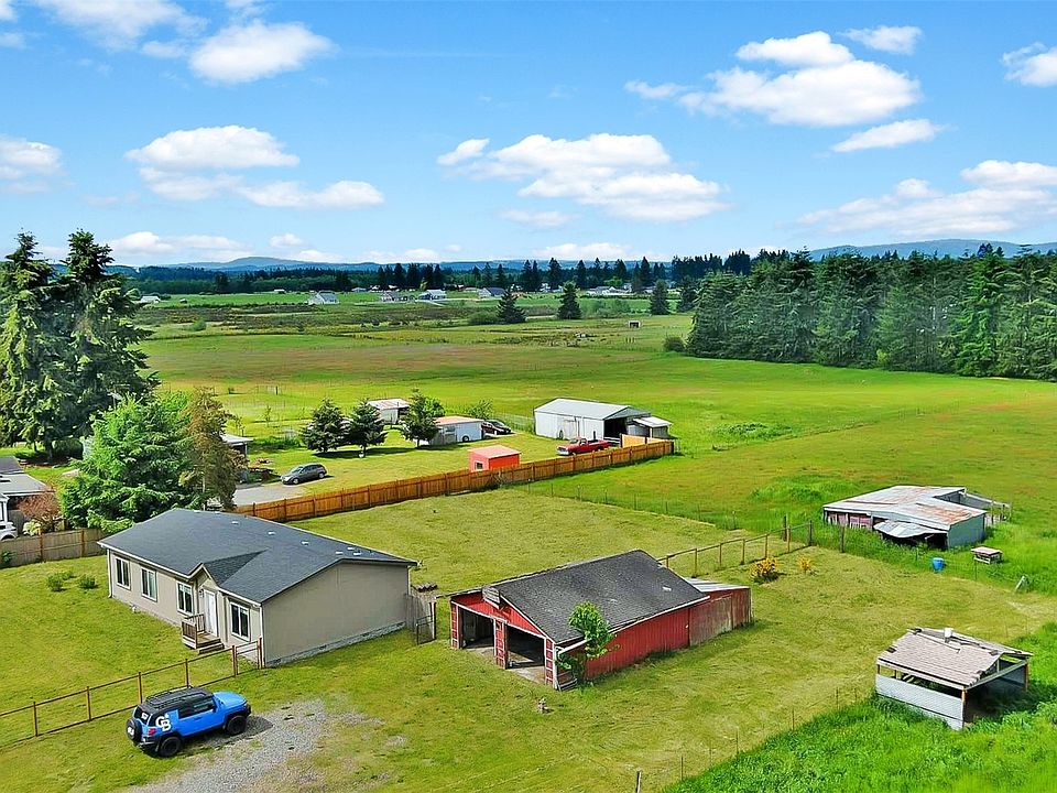 Beautiful prairie living! Home on the range, built in 2020, 3 bedrooms, 2 full baths + fully fenced 5 acres! Detached garage (TLC would make a solid garage & stable on backside of garage) + additional outbuildings too! Have critters? Equestrian haven, operable- flat parcel. ATV, recreation, storage, all welcome! Space to fill your yard and years of fun here! Forced air, open floor plan, vaulted ceiling, kitchen with eating bar, carpet, laminate, clean and easy, move in ready! Convenience of I-5 a few minutes away. This growing area, Exit 88 w/ restaurants, Brewery, coffee/cafes, fueling stations, central between Seattle, Portland, Mtns & Ocean, all w/in 1.5 hour commute to any! Lakes & Olympia with in 15-20 min. WA States Capitol County.