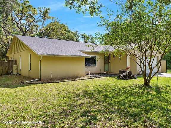 *Active Under Contract-Accepting Back Up Offers* Just a stone's throw away from SR 50 and snuggled right between Brooksville and Spring Hill, Florida lies this stunning 3-bedroom 2-bathroom home on one perfectly fenced acre. With bamboo, and lush landscape, including some of the largest azaleas I have ever seen, lies this newly renovated home and is just ready for new owners. Inside the home you will find an open living but split floorplan, complete with a brand-new kitchen remodel. Custom cabinets are found throughout the space, coffee bar, quartz countertops, and top of the line Bosch appliances, nothing was spared in this renovation. Just past this absolutely stunning kitchen that was completed in 2021, lies an enormous second family room and attached dining space as well, currently used as a movie room where many films have been enjoyed. The master lies to the left of the house, oversized walk-in closet, en-suite with shower and single sink vanity, and even larger attached office/flex space. Definitely a primary bedroom fit for a king/queen! The opposite side of the home is fitted with 2 bedrooms, equal in size with a great bathroom separating the two. The real treat is the outdoor space on this property...a covered patio perfect for sipping coffee in the mornings while listening to the cascading waterfall into the custom fishpond, home to a few fish already! Just beyond the incredible azalea surrounded Oak Trees, lies a garden area complete with irrigation, perfect for all your homesteading wishes. There is a detached shed in the backyard as well, perfect for storage, or even a great workshop complete with electric run to it. Just bring your toothbrush...this home is turnkey ready. New kitchen and flooring in the main part of the home in 2021, new roof in 2022, and new electrical panel as well in 2021. Give us a call today to view this magical property!
