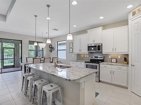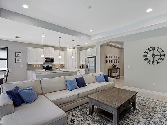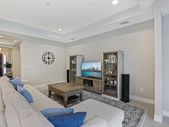 Better than new! This 2018 built home has been meticulously cared for by the owners and will impress even the most discerning buyers. An immersive 360-degree virtual video tour is available. An impeccable home, with a smart and highly functional open floorplan, perfect for entertaining. The kitchen features wood cabinets, top-end granite counters, stainless steel appliances, a custom backsplash, and a wet island. You will enjoy over 2,000 square feet of under air living space, and generously sized bedrooms and closets. Home has ceramic tile flooring throughout, and plush carpet in the bedrooms. Master bedroom features a walk-in closet, and an en-suite bathroom with both a walk-in shower, and a soaking tub. Owners have incorporated several custom upgrades such as high-end sound system capabilities, lighting dimmers, and other smart home ready features. Barrington Cove is located along the Livingston corridor, just north of Immokalee Road. Featuring only 133 home sites, there is no CDD and low maintenance fees. A superior North Naples location and zoned for top-rated public schools. Shopping, dining, I-75, and Naples' gorgeous beaches are just minutes away.