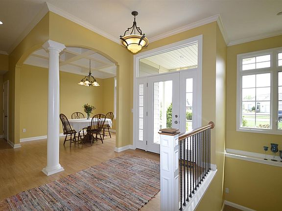 RANCH on DAYLIGHT BSMT & cul-de-sac street! Foyer opens to the formal DR w/coffered ceiling & corner column. Lots of natural light from the large transom windows! GR w/built-in entertainment cabinet, wall shelves & corner gas FP. Kitchen opens to GR w/plenty of counter space, raised bar & breakfast nook. Wide stairs w/rod iron spindles & large landing leads to the fin bsmt w/cozy TV area & rec room plus wetbar & half bath! Interior & exterior walls spray foam. Entire home repainted top to bottom! Soaring 10' ceilings & crown molding thru main living areas. Recessed lighting, custom arched doorways, custom blinds & closet tamers. 2 Electrical panels. Roof was tear off in '15! Newer water softener. Master en-suite w/walk-in closet & full bath w/dbl vanity, cathedral ceiling & jet tub. Split bdrm w/2 other nice size bdrms & great closet space! Full bath w/dbl vanity. 3 Car Garage w/pegboard, workbench & wall storage cubbies! Plumbed for irrigation system. Extra-large patio area out back!