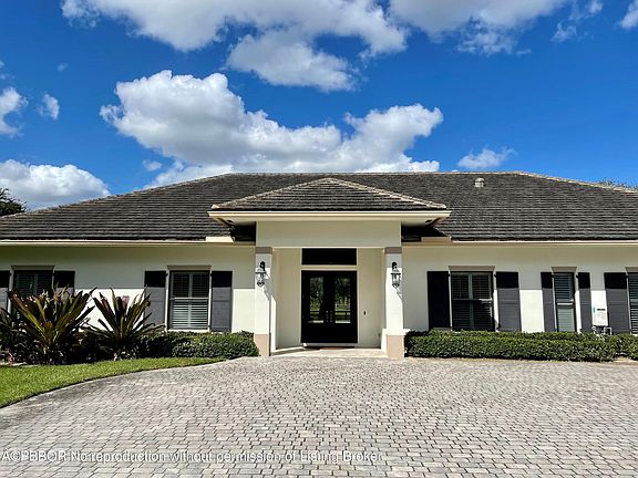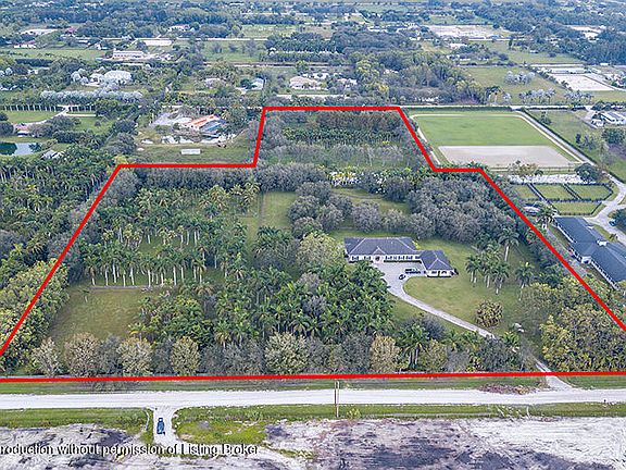 Looking for the perfect equestrian property? This beautiful 3762 sqft home with 1500 sqft 4-bay garage sits on 14 acres in 2 parcels in Rustic Ranches. It has access to all of the horse trails of Wellington, and is just waiting to be developed with stables, another primary residence, or whatever you are dreaming of! The first parcel is 9.19 acres, with a perimeter track, fenced paddocks, and an irrigation system that draws on a pond, while the second is 5 contiguous acres, and the property fronts on two streets and has two assigned addresses. This custom built home is full of natural light with a view through floor to ceiling windows onto fenced pasture and paddocks shaded by mature oaks. It features high ceilings, 4 bedrooms, 3.5 baths, marble tile floors, tons of outdoor space including
