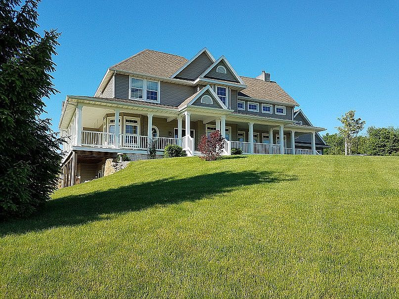 Stunning and peaceful 40-acre property in a picturesque setting is a serene environment amid beautiful rolling hills and wood lots. This one-owner home built in 2008 exudes quality deserving of its location. With high-end yet practical amenities and style, it is warm and inviting. The main living area's cathedral ceiling offers views from the second story and floods the home with natural light. Maple floors and cabinets are a refreshing change with stainless appliances complementing the decor. A woodburner tastefully anschors the room as it provides additional heat and ambiance. The main floor master suite opens to the spectacular wrap-around porch, where gentle breezes and fabulous panoramic views are found. The unfinished walk-out basement with its 9' ceilings and wise clustering of