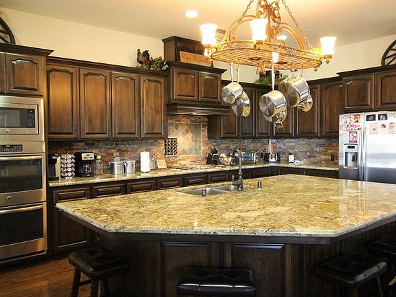 Beautiful custom-built Monterey Ranch home on a 1/2 acre lot with RV parking and fully owned solar at the end of a cul-de-sac! This masterpiece features 5 bedrooms, 3 bathrooms + office and bonus room with wet bar. The one-of-a-kind master suite includes oversized his/her closets, granite countertops,makeup vanity, walkthrough glass shower and jetted soaking tub. The large open kitchen is a chef's dream, and features a 5 burner range, double ovens, custom cabiets, an oversized island and walk-in pantry. The kitchen overlooks the spacious living room complete with a beautiful double-sided stone fireplace. Additional amenities include 3-zone climate control, lovely wood floors, custom entry French doors, plantation shutters, formal dining room, large utility room with sink, ample storage space, oversized 3-car garage, and pre-wired for security cameras and surround sound. The exterior features a HUGE covered patio, overlooking a massive backyard with beautiful landscaping.