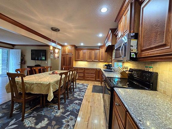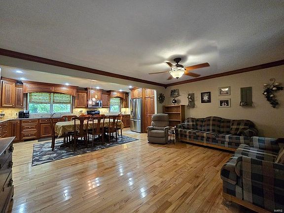 This remodeled home will have you ready to be a host. The kitchen was custom built, designed and installed to a very high standard. The cabinetry is a combination of Cherry, with inlays of African Sapele and tiger maple stringing. The counter tops are solid surface throughout the kitchen, with Travertine backsplash and soft close cabinets. There is a huge amount of storage in the kitchen. Additionally, there is custom built-in closest and vanities in the primary bedroom, secondary bedroom and both bathrooms as well. The common areas feature cherry baseboards and crown molding. Additionally, the home features four bedrooms and two full bathrooms, all with reasonable space for a larger family. The property sits on three partially fenced acres that have been utilized as grazing pasture, and the yard features mature landscaping and mature shade trees. Property is within 15 minutes of Lebanon and is in Joel E. Barber School District. This is a must see.