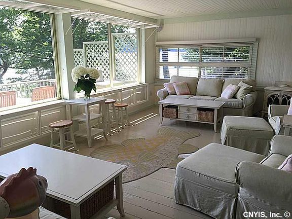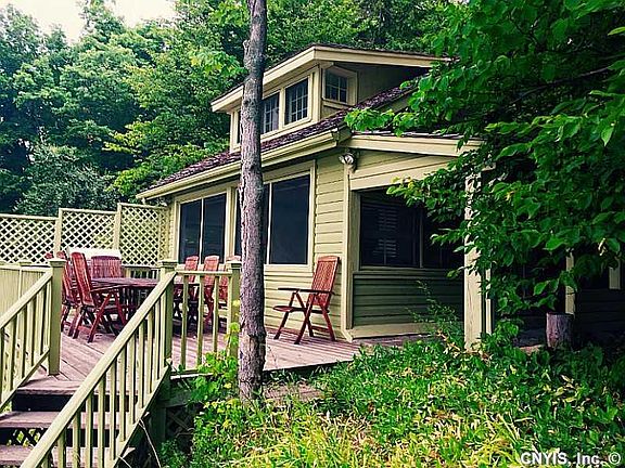 A rare opportunity to own a treasured property nestled beside a stream and a waterfall, and steps from Skaneateles Lake. This seasonal cottage sits on 13.37 acres, with 361' of private waterfront. The main cottage features an open floor plan on the first and second floors. The renovated guest house has two master suites, both with gas fireplaces. Enjoy breathtaking views of the south end of the lake from inside and outside. Permanent dock. Brand new 2014 septic system. Property includes a buildable lot on the water. 20 min from downtown Skaneateles on the east side.
