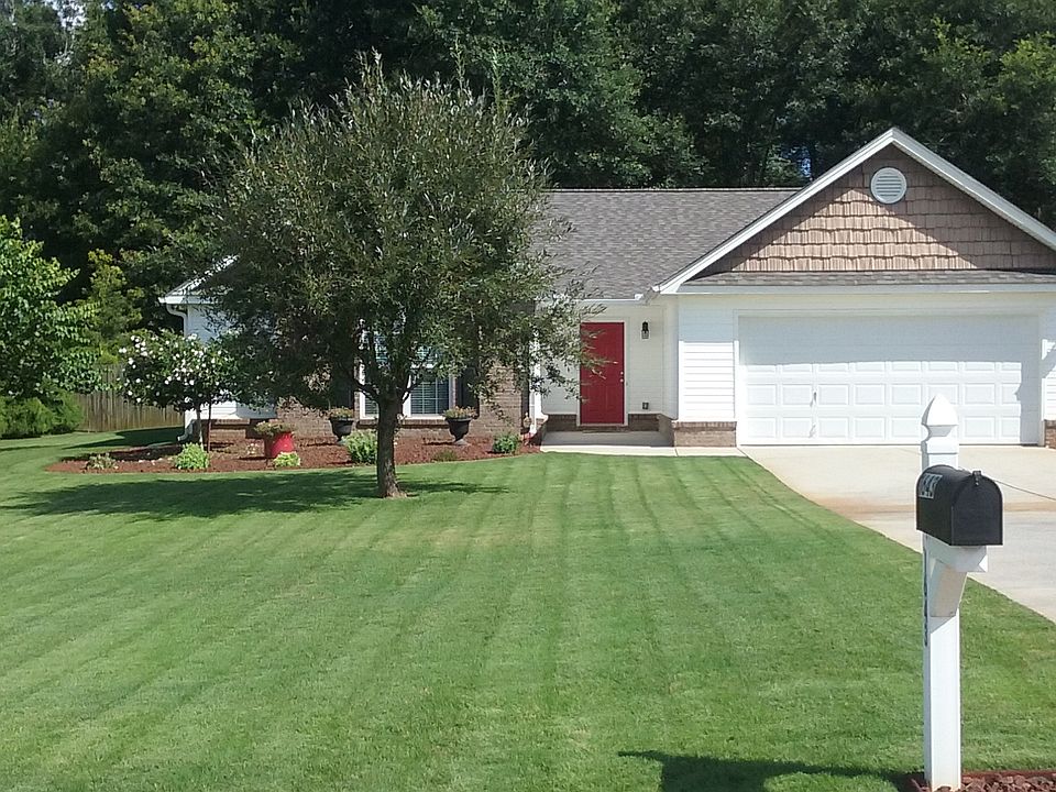 Immaculate 3 bed 2.5 bath ranch home w/ open floor plan in the prestigious Rivers Call subdivision. Large family room features a vaulted ceiling and masonry fireplace. Spacious eat in kitchen opens to the family room and features pot racks, island, and white cabinets. Formal dining room seats 10+. Master suite with double tray ceiling and walk in closet. Master bath features a beautiful double vanity cabinet and separate tub/shower. Wood and ceramic throughout. Professionally landscaped yard features 2 storage buildings and a fenced backyard. An absolute must see.