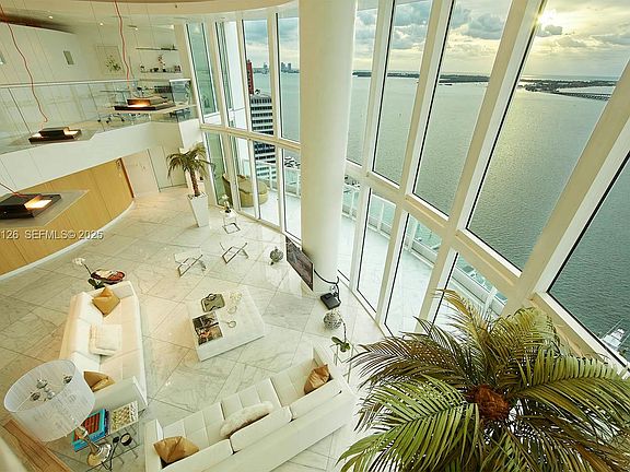 Modern and elegant 2 story unit with double height ceiling at Santa Maria in Brickell. 4BR/4.5BA totaling 5,730 Sqft (532m2) of interior plus a wraparound Balcony. Unobstructed views overlooking direct Ocean, Downtown Skyline & Key Biscayne. Custom design detail includes a spacious living and dining area, entertaining space, lots of walking closets, marble interior finishes and floor to celling windows. Option to buy a private dock is available with this unit up to 90 ft yacht (a few options avail). 3 parking spaces. Amenities include a new bay front pool, marina, new fitness center in the sky, billiards, business center and a 6,000 Sqft clubhouse, Pilates studio, outdoor kids playground in the garden.
