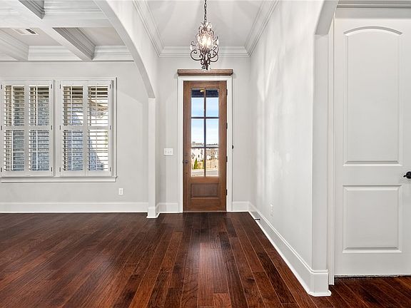This beautiful 4 bedroom, 3.5 bathroom is nestled in the desirable Yarbrough Farms. Impeccably cared for, this home is truly move-in ready & features an array of stunning upgrades. The spacious living room has vaulted ceilings, while the elegant dining room boasts a coffered ceiling. The open-concept kitchen has a large island, gas cooktop, pantry & a cozy eat-in breakfast area. On the main floor you will find the primary bedroom with custom built wardrobes in the closet & 2 additional bedrooms with a jack & jill bath. Upstairs is bedroom 4 with a full ensuite bath & ample walk out attic storage. All through the home, you'll find plantation shutters & walk in closets in each bedroom. The screened-in back porch with flagstone flooring provides a peaceful space for relaxation, while the professionally landscaped backyard is perfect for outdoor enjoyment. With breathtaking views of the 11th fairway on the golf course, this home offers the ideal balance of privacy & scenic beauty!