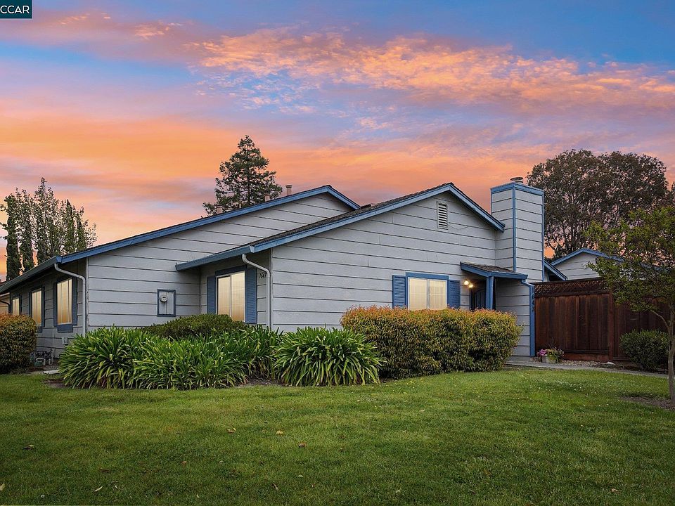 Tucked away on a quiet corner lot in a highly sought-after neighborhood, this rarely available single-story duet offers the perfect blend of style, comfort, and location. Featuring 3 bedrooms and 2 remodeled bathrooms, the home showcases engineered hardwood flooring, tiled bathrooms, vaulted ceilings, and dual-pane windows that fill the space with natural light. The interior is freshly painted in a soft, neutral color palette, ready for your personal touch. The spacious living room features a striking stone-faced wood-burning fireplace and opens to a large backyard with green lawn, deck, and gazebo—ideal for relaxing or entertaining. The white kitchen with granite countertops is ready to inspire your culinary side. The dining area flows seamlessly into the living room, creating a modern open-concept layout perfect for gatherings. All bedrooms include ceiling lights and modern fans. Enjoy indoor laundry, a detached 2-car garage with a new roof and full size driveway, ample guest parking, and extra storage. HOA maintains the front yard, and amenities include a pool, basketball court, a pond and walking trails. Low HOA dues and no rental restrictions. Convenient to shopping, restaurants, and 580 freeway. A rare find—don’t miss it!