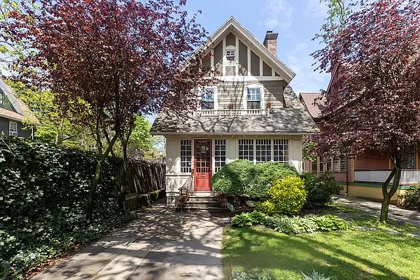 Welcome to the most charming Craftsman-style Bungalow in Ditmas Park. This single-family home, built in 1915, is a beautiful example of what makes Craftsmans so desirable. A wide window-enclosed porch welcomes you into the elegant double living room, which features a striking brick laid wood-burning fireplace, as well as windows on every side. The generous dining room has French doors, a coffered ceiling, stained glass windows and is open to the eat-in kitchen with a convenient half bath. The original wood dentil ceiling moldings, tall baseboard moldings, and lovely arts and crafts style window-surrounds are beautifully maintained, this is a special house. Upstairs, three well-proportioned, light and airy bedrooms, and a large updated full bath, with more period details including many original light fixtures. Another flight of stairs leads up to two more attic bedrooms and extra-deep storage closets under the eaves. The garden and deck are accessed directly from the kitchen and feature mature trees and plants. The English basement has good ceiling height, a windowed renovated full bath, a separate laundry room, a large rec-room and an additional office or workshop space. The mechanicals are well maintained. On a low-traffic cul-de-sac, 1643 Glenwood Road is around the corner to all of the favorite shops and restaurants the area has to offer, and a few blocks the Q/B line, giving you quick access to Manhattan from one of Brooklyn's most idyllically picturesque neighborhoods.