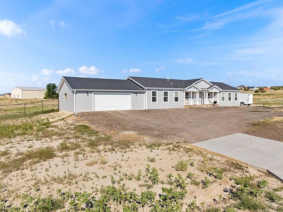 Like NEW Rancher located off the beaten path on a 1.02 acre lot! This crisp and clean home has nice curb appeal with a Traditional Covered Front Porch, Rocky Mountain Views, and a professionally fenced back yard. Welcome to this sprawling floor plan with plenty of room to entertain. Enjoy your Dream Kitchen with the large island/breakfast bar, solid surface counters throughout, Chef's range hood vent, tile back splash, Stainless Steel Kitchen appliances, tons of cabinets/counter space and a Walk-in Pantry wi/additional cabinets, counters, and shelving. 3 large bedrooms and 2 baths, Master suite features a Walk-in closet, and beautiful well appointed 5-piece Bath with soaking tub, large shower, double vanity ,and linen cabinet. Owners entrance from the 28 x 24 oversized 2-car garage. You will enjoy the convenient Laundry space with additional Built-in cabinets and utility sink. Ready for new owners, so set up your showing today!