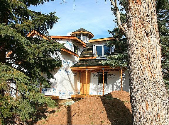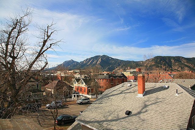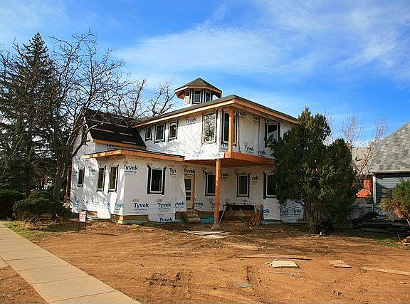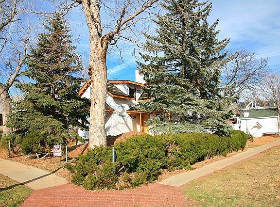 Large treed double lot a block from Pearl Street. House is unfinished. No plumbing or electric but has passed framing inspection. No kitchen or bathroom appliances. Has a widow's walk (flat roof deck) accessed through a rooftop turret. Wonderful mountain and city views. Can build additional 500 sq ft garage with rentable apartment above subject to city permit. Current 320 sq ft 2-story garage could be a nice studio or office.