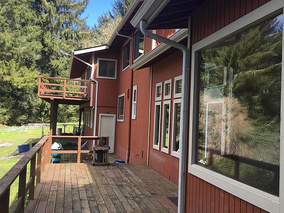 UNIQUE HOME IN A GREAT SETTING. Views from every window. Enjoy the beauty of nature and wonderful views of the ocean, hills and several meadows from this home's 1,200 Square feet of decking. This over twenty acre parcel features a very large multi-level home with a very private surroundings, hot tub and a huge greenhouse, just minutes away from downtown Fortuna. A very spacious unit on the top floor with second kitchen, bathroom and two bedrooms could be rented or used as a mother-in-law unit. Big foil green house with water and electricity access, plenty of spring water, OCEAN VIEWS AND COMPLETE PRIVACY WITH LOTS OF SPRUCE. Large living room, triple car garage is OVER 770 SQ.FT. with the heating system. TOP OF TOMPKINS HILL ROAD. Two geted roads to the house. Whole house was redone 2011