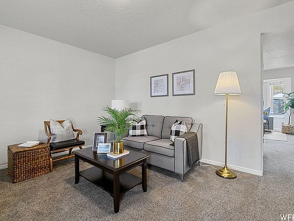 Looking for that perfect home? Well look no further. Some features that set this home apart are the majestic views of Mount Timpanogos from your entryway patio, large kitchen with solid surface countertops, built in blinds in sliding door to backyard, 2 bedrooms and 1full bathroom on the main, new HVAC system installed 2019, large open laundry room, spacious master bedroom with large master closet and much more. You will love the fully fenced backyard with large patio, mature trees, shed and play set as well as the RV parking with plenty of room for your guests. Don't wait until it's too late. Schedule a showing today.