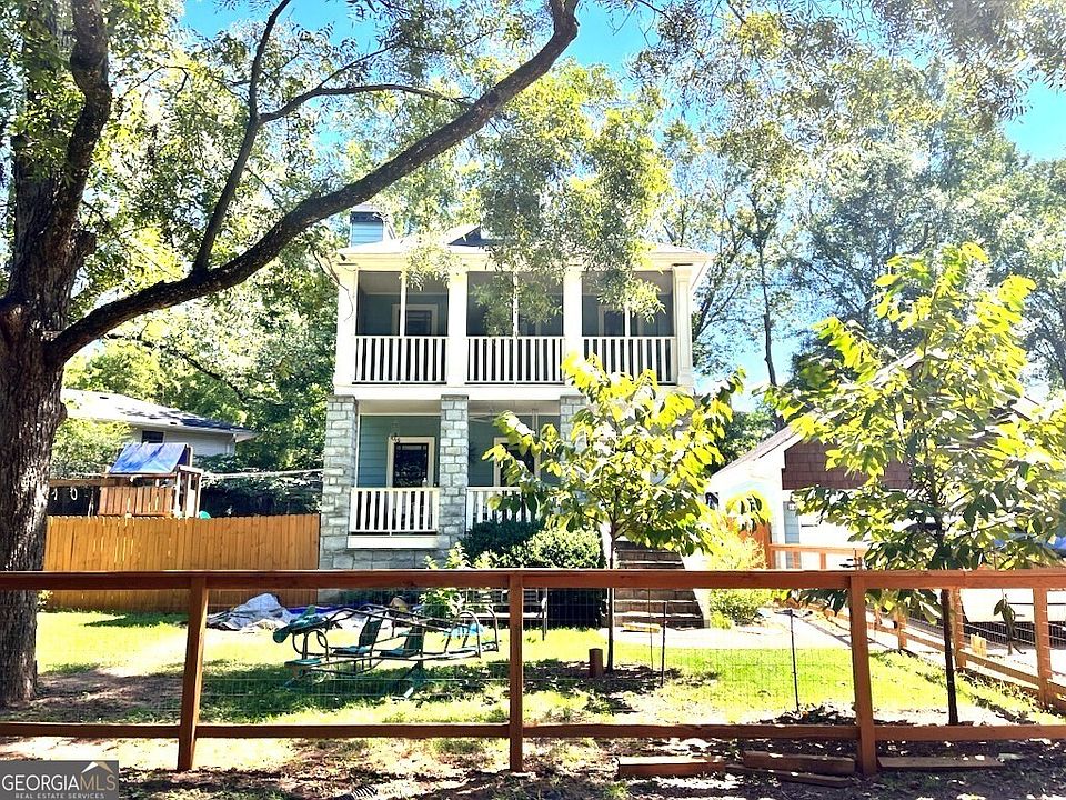 This beautifull Craftsman home in the heart of Historic Kirkwood offers incredible curb appeal with two inviting front porches. Inside, you'll find gleaming hardwood floors, high ceilings, and an abundance of charm throughout. The spacious living room features a cozy fireplace, a wall of built-in bookshelves and opens seamlessly to the dining area and kitchen, complete with stainless steel appliances, granite countertops, and a large island perfect for entertaining. The kitchen also provides convenient access to the laundry room and back sunroom. The master suite is a true retreat, offering its own fireplace, a walk-in closet, an en suite bathroom, and private access to a second porch. The large, level fenced-in yard features a custom-built chicken coop and a professionly assembled child's playset, adding unique character and charm. You'll enjoy the convenience of a 2-car garage with it's own attic space for storage. Located on the Trolly Line Trail portion of the Beltline, this home is ideal for those looking to experience all that this wonderful neighborhood has to offer. Note that the house numbers on Wade Ave. are not sequential - they run 1641, then 1645 and then 1643. Make this your next rental home - schedule a tour today.