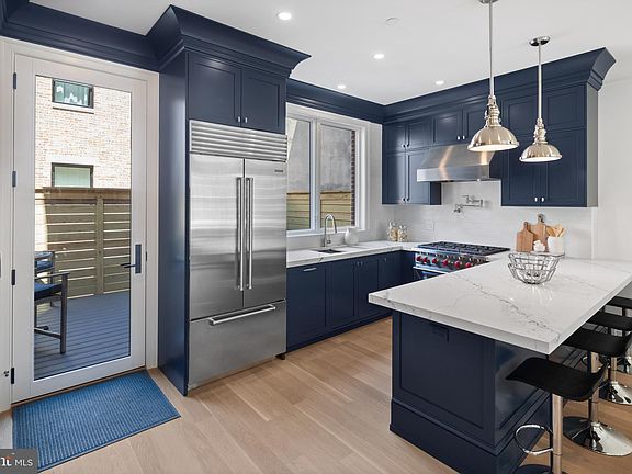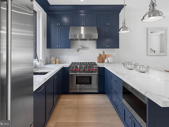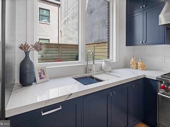 Situated on one of the most quiet, low traffic streets in Rittenhouse is 1643 Waverly, a rare, move-in ready home. For three years, the builder has meticulously prepared this home to become the ultimate "Turn Key" luxury home– and now it's ready to be yours. This home has a full brick exterior, front, sides and rear to historic standards, with a brick paved sidewalk with concrete base, Marvin Ultimate top of the line windows and rear doors. This home utilizes every square inch of space over the 3 bedrooms, 3 full bathrooms, private attached garage, and two outdoor spaces. The front door features a custom solid 2.5" thick mahogany entry door set, Baldwin satin brass oiled pin hinges with address plate imported from England. First floor features high end porcelain tile walkway to the rear den/flex room. Off the entry way is the fully finished garage with epoxy floors, with extensive handmade garage cabinetry, fully inset cabinets and custom paint. Towards the back of the first floor is a rear den/home office with pocket inset doors leading to a fully tiled bathroom, with a frameless glass shower with a stone bench. Off this room is a sliding floor to ceiling glass door leading you to the private ground floor terrace, complete with Trex decking, LED lighting and dry deck above. As you enter the second floor, you’re greeted by the sleek kitchen and island with four person seating. Well thought out design elements such as handmade inset cabinets, crown molding, matte-finish porcelain tile backsplash, quartz countertops, a signature hardware kitchen faucet, and Baldwin Brass Palm estate cabinet knobs truly set this kitchen apart. Surprisingly convenient appliances like a built in full height pantry, pot filler, and Kraus insulated sink with a built in drying rack and cutting board make everyday cooking or entertaining a breeze. Top of the line appliances finish this kitchen, including 36" wolf range and hood, six burner gas stove, 36" subzero fridge, built in Wolf microwave drawer, and Viking dishwasher. Natural light pours through the oversized windows and extended Marvin Ultimate glass doors that lead to your private 2nd floor deck. Traveling to the 3rd floor, you’ll find two two spacious guest bedrooms with large closets and a full bathroom with beautifully set tile floor and walls, a Kohler soaking depth bathtub, and louvered privacy plantation shutters. Strategically placed in the hallway is the laundry center with storage space and a Sansom stacked unit. Full-lite glass doors lead you up the 4th floor to the spacious primary suite. On this level you’ll find a full bathroom with city sky-line views, tile floor and walls, and a 72" built-in double vanity. The luxurious glass shower stall, low iron crystal clear glass, body sprayer, and custom drain curate the spa like experience in this bathroom. For chilly evenings and romantic nights, turn on your imported European Le Feu-Biofuel eco Ventless fireplace to transform this space into your enclave of relaxation. Topping off this incredible property is a 10 Year Tax Abatement and prime location just steps away from Rittenhouse Square, fine dining, shopping, retail, doggie parks, festivals, outdoor and indoor cafes.