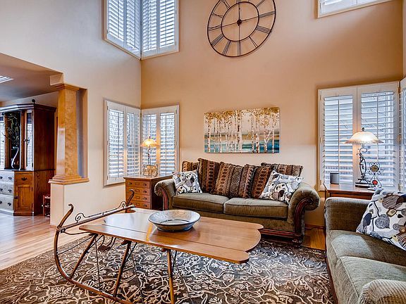 Open house Sat 1/25 11-2 pm. Gorgeous Stonegate home w/ newly remodeled kitchen & updated master bath backs to greenbelt. Great open layout features hardwoods on main. All new windows finished w/ plantation shutters. 2-story entry opens to living room w/ 2 tiers of windows. New kitchen features stainless appliances & large island w/ solid granite top, breakfast bar & gas range. Formal dining room accented with tray ceiling & architectural columns. 2-story family room has fireplace & built-ins. Main floor study has built-ins. Upgraded curved staircase leads to hardwood landing w/ overlook. Master suite has hardwoods, vaulted ceiling & 2 walk-in closets. Remodeled 5P master bath features designer finishes & new tub. Finished basement has large rec room & 3rd full bath. New roof. Enjoy Colorado sunsets from new stamped concrete patio. Greenbelt connects w/ miles of walking paths. Cmty pool & tennis. Walk/bike to elementary. Minutes to hwys, malls & HS.