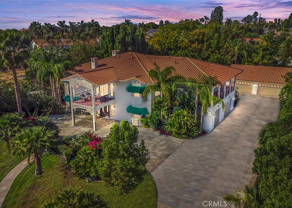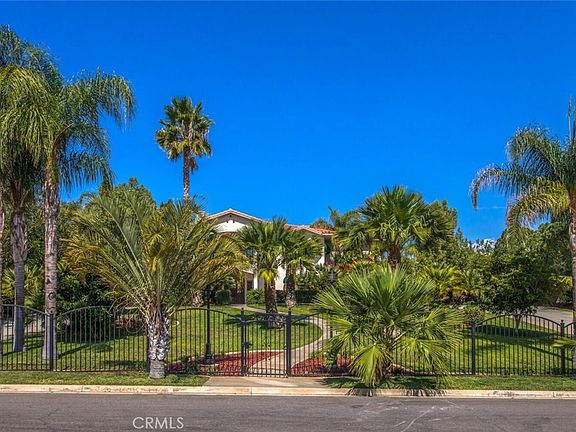 Welcome to this immaculately built estate sitting on .95 acres. This ultra private and custom Mediterranean home was built in 2004 with a total of 5,686 sq ft of unparalleled luxury. Walk through the front entrance to double wooden doors to a stunning grand dual staircase and tubular skylights. With intricate detailing throughout this estate featuring 6 bedrooms, 5 bathrooms, multiple beautiful living spaces, a formal dining room, marble, tile and carpet flooring. This home features a dual automated gated circular driveway with an attached three car garage and a detached four car garage with its own private bathroom. Bring your car collection. Each bedroom has its own balcony to enjoy the view from any angle. Once you walk into the kitchen you will notice the beautiful dark cherry oak cabinets with black kitchen aid appliances, built-in fridge, double convection ovens, 2 sinks with one in the island, pull out drawers, granite counter tops and a walk-in kitchen pantry. In the family room you will first notice a custom built-in media cabinet, fireplace and large wet bar. The master bedroom features a double sided fireplace with retreat, large balcony, a double walk-in shower, roman tub and a private bathroom with a bidet. Come and enjoy the upstairs media room with a stunning billiards table, wine refrigerator and large wet bar. Step outside onto the immense rear patio that spans nearly the length of the entire house. From here you will see a bountifully green backyard with a large grassy area and enough trees in this backyard to transport you to a tropical paradise. The entirety of this property was designed by a landscape architect and has been maintained to perfection ever since completion. As an added bonus this property is currently sitting on A-1-1 zoning (agriculture) so if you are looking to grow a garden or stable your horse this is your property.