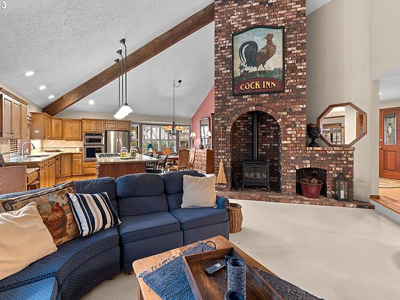 Nestled within the picturesque Sandstone neighborhood and situated on a coveted corner lot, this one-level home embodies comfort and elegance. Design elements include a hardwood entry, and vaulted ceilings gracing the kitchen, family room, and dining area. The well-appointed kitchen showcases granite countertops, and a cook island flaunting a 5-burner gas cooktop, complemented by hardwood floors & stainless-steel appliances. Adjacent to the dining area is a recessed wet bar, allowing seamless entertaining options. In the family room, you are drawn to an architectural gem, the soaring brick fireplace and a free-standing gas stove, which beautifully utilizes the open space. The adjacent living room includes a gas fireplace and a bay window adorned with shutters, adding a touch of sophistication to the ambiance. The primary bedroom suite features a luxurious primary bathroom boasting heated tile floors, marble countertop with dual sinks, skylight, walk-in shower, and a walk-in closet. Enjoy the convenience of an indoor laundry area. Modern amenities include a newer energy-efficient furnace and water heater, ensuring year-round comfort and practicality. The outdoor space includes a fenced backyard housing a newer Trex deck, ideal for al fresco dining, or simply unwinding. The 2-car garage features epoxy flooring and storage cabinets, offering ample space for your vehicles and belongings. Overall, this meticulously designed residence seamlessly blends functionality with tasteful finishes, providing a haven for relaxation and entertaining. Its prime location, coupled with its myriad amenities, thoughtful features, and no HOA, makes this an exceptional opportunity.